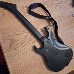 Kramer Guitar Hero-gitarr i svart design. Gitarren har färgade knappar på halsen och en axelrem. Endast gitarren. Ej funktionstestad