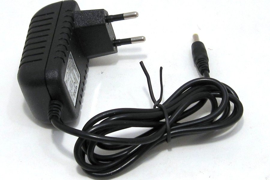 Den är på 9V, 2A, center positiv polaritet.