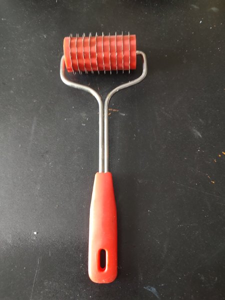 Degrulle 26,5 cm lång med rött handtag. Köparen betalar frakten. Helst omgående betalning.