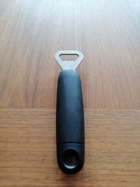 Kapsylöppnare med större handtag. Handtaget är gjort i väldigt greppvänligt material.