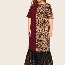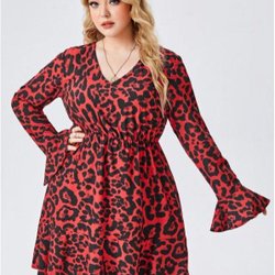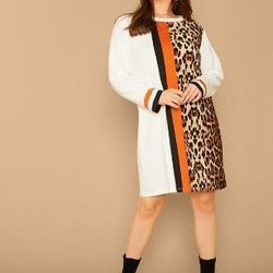 Klänning leopard, långärmad