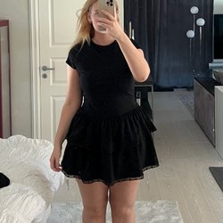 Vi har tyvärr inte möjlighet att besvara frågor om plaggens mått, utan all info vi har står redan i annonsen. Skulle plagget inte passa är du varmt välkommen att sälja det vidare!