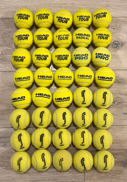 40 begagnade tennisbollar av olika märken i bra skick. Perfekt för träning eller lek.