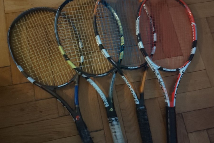 Fyra tennisracketar av märket Babolat.