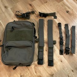 Äldre magasinfickor från snigel, får plats med 2-3 5.56 magasin beroende på om det är plast eller plåtmagasin. Har inte provat med Magpul 5.56/7.62 magasin eller AK4 magasin.