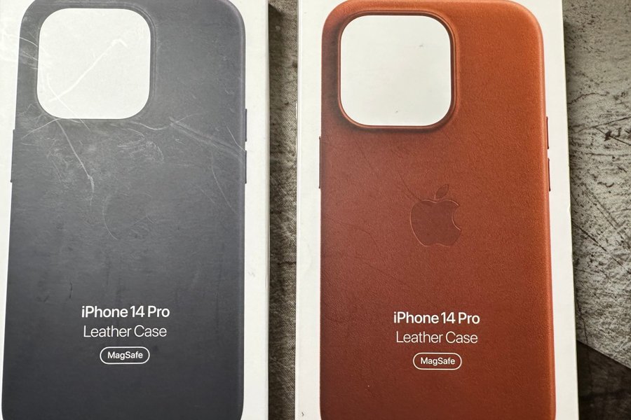 Två iPhone 14 Pro läderfodral original med MagSafe.