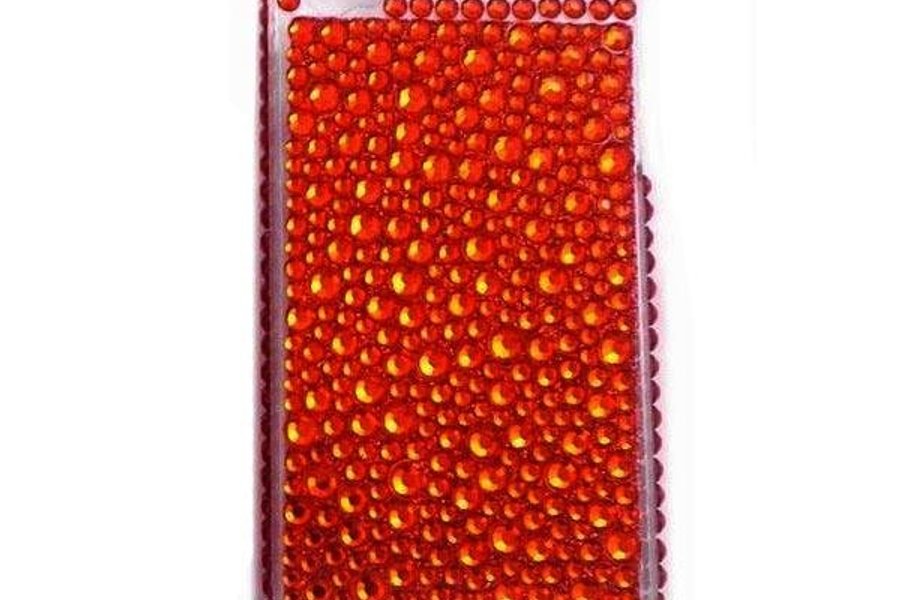 Skal i hårdplast med glittrande pärlor.