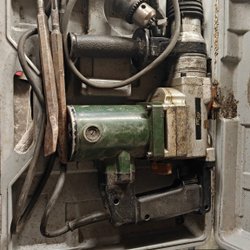 Handborr i metall Verktyget har ett handtag för att veva och ett handtag för att hålla emot. Chucken är justerbar.