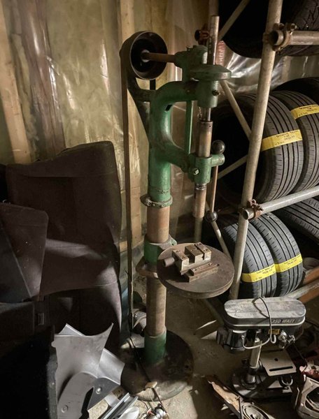 Plattremsdriven pelarborrmaskin. Även elmotor och motorfäste följer med. Sitter dock inga kilremmar till motorn, men jag kanske har något som passar liggandes. Chuck saknas.