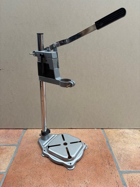 En stabil borrstativ för exakt borrning av plana material, runda material och lister. Har en fräst arbetsyta med spår för fästning av spännjärn eller maskinskruvstycke. Med integrerad returfjäder med rundpelare.
