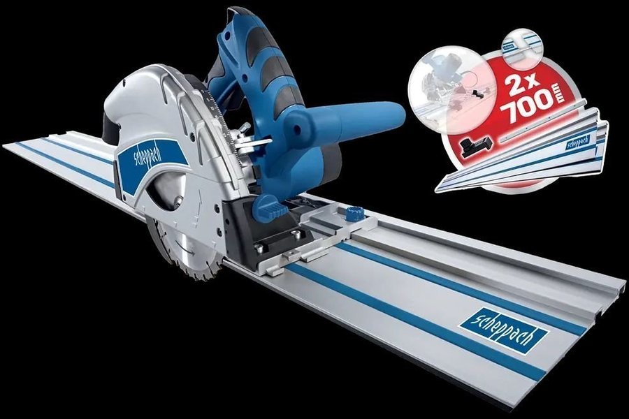 Sänksåg från Scheppach. Sågar 55mm. Använd till 1 mindre jobb. Inkluderar 2x700mm skenor och 1st skarvbeslag. Bästa priset på tradera