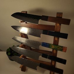 Grit 400 passar för att reparera lite större skador i knivar för att sedan jobba sig till 1000 för att få en riktig skärpa och fin egg. Avsluta med att stroppa kniven på läderbryne eller liknande för att få kniven sylvass.
