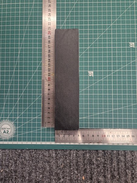 En mindre strigel i MDF med yta av vegetabiliskt garvat svart läder. Blanka sidan uppåt.