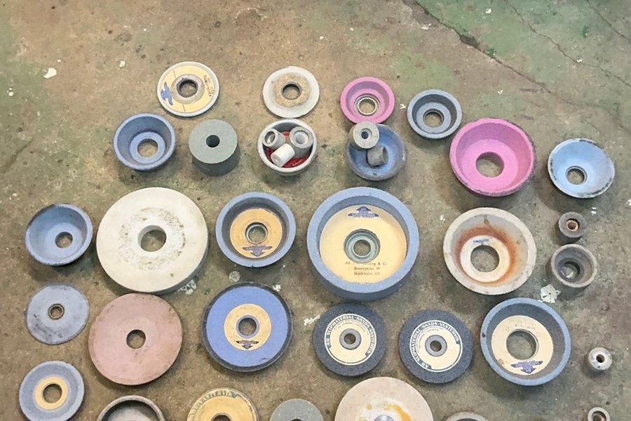 Ett parti med slipskivor i olika storlekar och former.