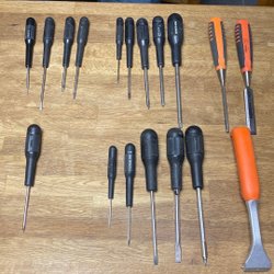 Hammare med ett huvud i metall och ett skaft i trä.