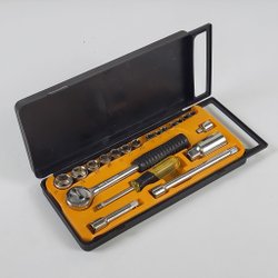 Spärrhandtag med "CHROME-VANADIUM" ingraverat på skaftet. Handtaget är svart.
