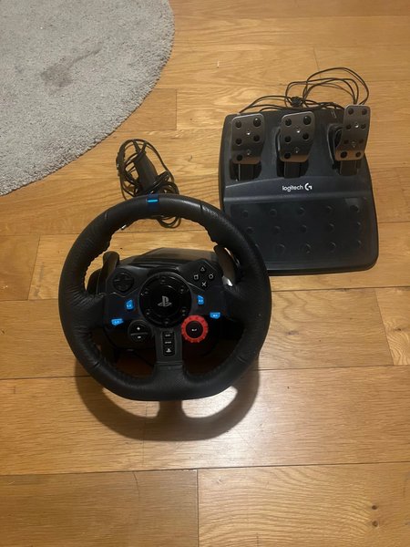Logitech G29 Driving Force ratt och pedalset. Designad för PlayStation-konsoler. Ratten har integrerade knappar för enkel kontroll och pedalerna ger en realistisk körupplevelse.