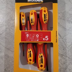 Ett skruvmejselset med olika storlekar och typer av skruvmejslar. Setet innehåller 24 delar. Det är helt nytt oöppnat