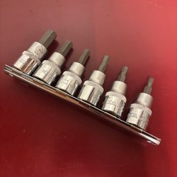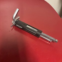 Verktygen ligger på en pall för storleks jämförelse.