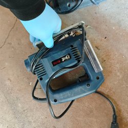 Hörnsliper för slipning av ytor. Modell: ETC Tools No. 96-380. Effekt: 160W. Varvtal: 6000-10000 r/min. Slipdyna: 90x90x90mm.