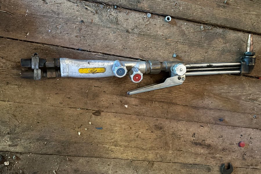 Gassvets för olika svetsarbeten. Utrustningen är avsedd för användning med gas och har anslutningar för gasslangar. Den har reglage för gasflöde och en avtryckare för att starta gasen.
