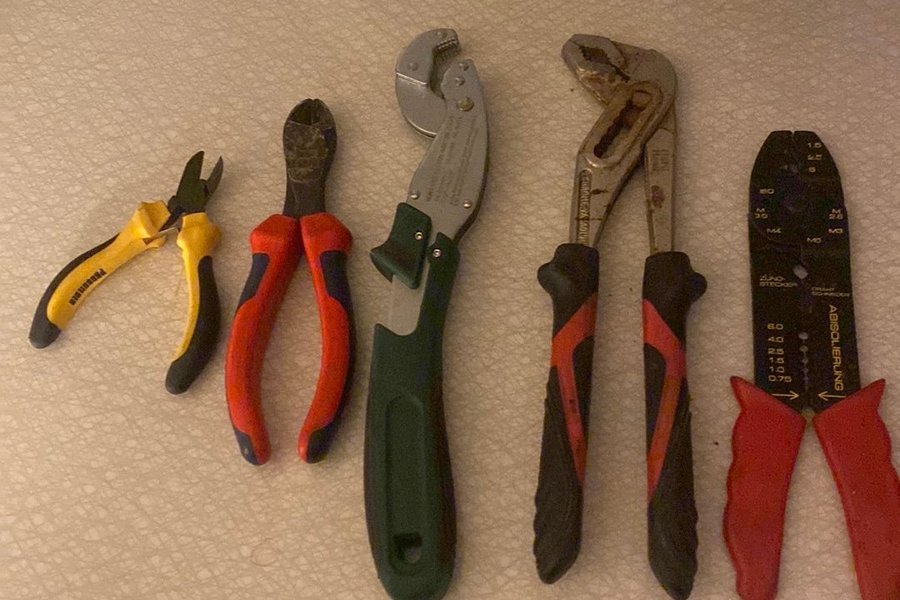 Ett set med diverse verktyg. Inkluderar tänger och en kabelskalare. Knipex och lite olika märke