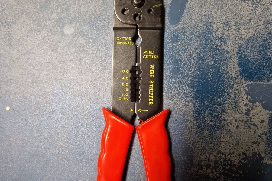 Kombinationstång med funktioner för avisolering, kabelskotång och kabelskärare.