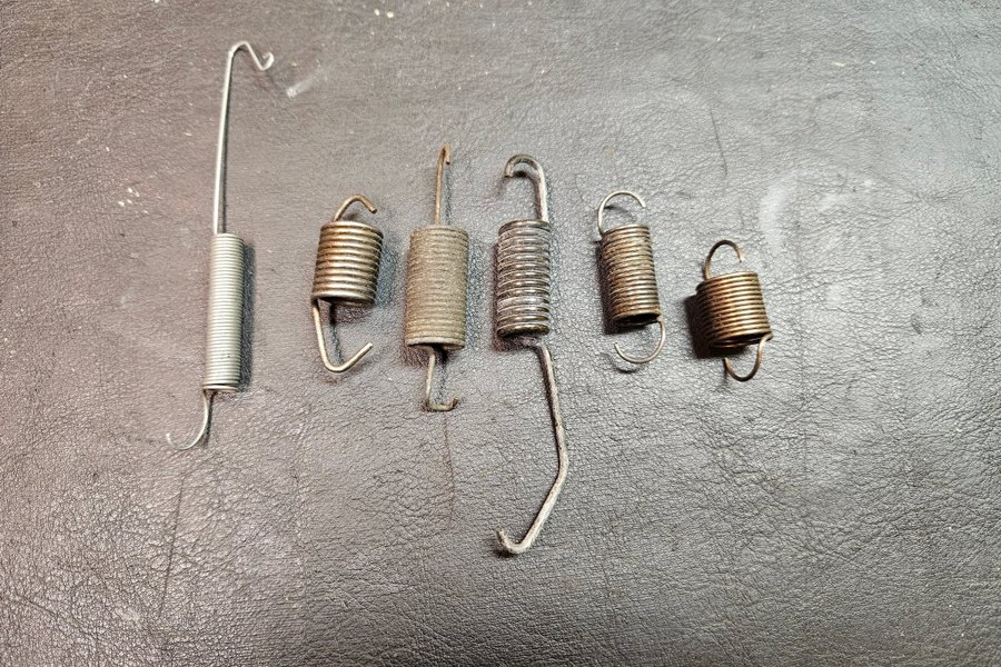 Dessa fjädrar är lämpliga för olika användningsområden. De är tillverkade av metall och har olika storlekar och former.