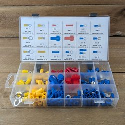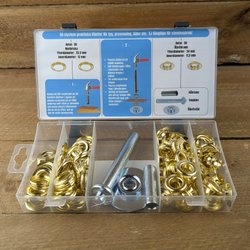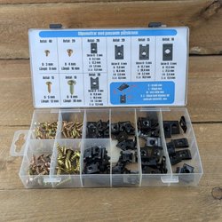 80 stycken självspännande slangklämmor av fjäderstål i de nominella storlekarna: 6,5 mm, 8 mm, 10 mm, 11 mm, 12 mm, 14 mm, 16 mm och 18 mm.