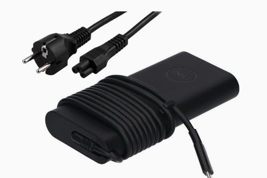 Dell laddare med strömkabel.