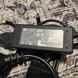 HP nätadapter, modell: HSTNN-LA40. Effekt: 45W. Kontakten är den mindre varianten med en blå ring.