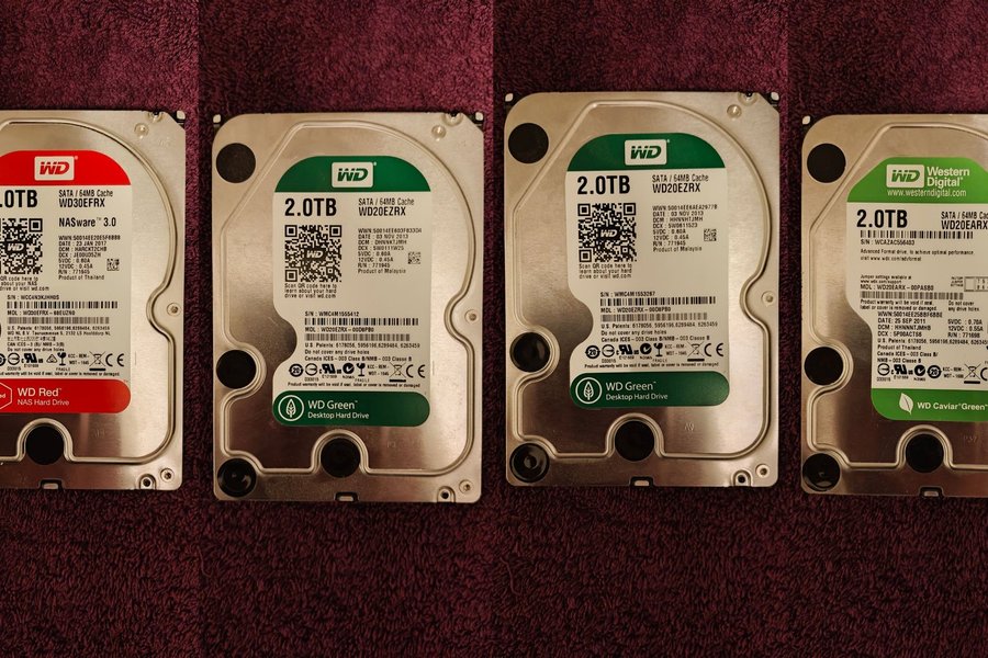4st mekaniska Western Digital 3.5" hårddiskar.