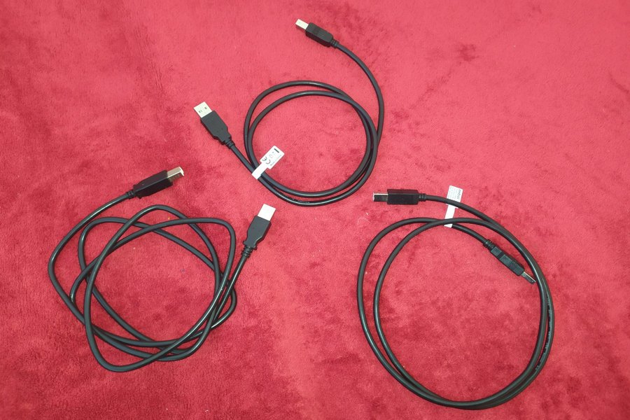 Tre USB-B kablar av märket Exibel. Revision 2.0. Har använts för att spela in DJ-set.