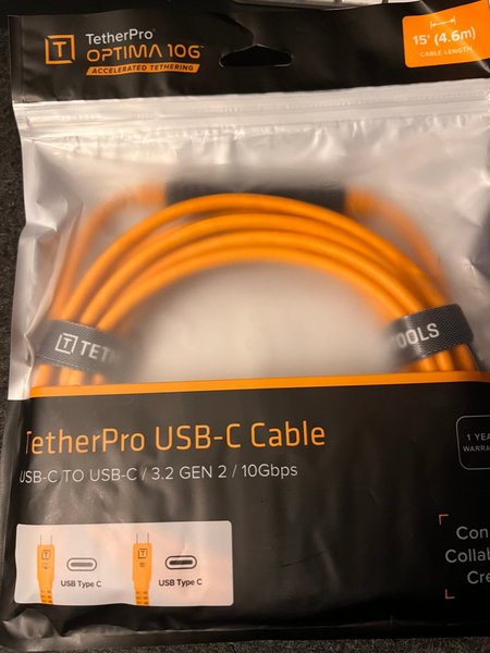 TetherPro Optima 10G USB-C till USB-C kabel. 3.2 Gen 2 / 10Gbps. Kabellängd: 15 fot (4.6m).