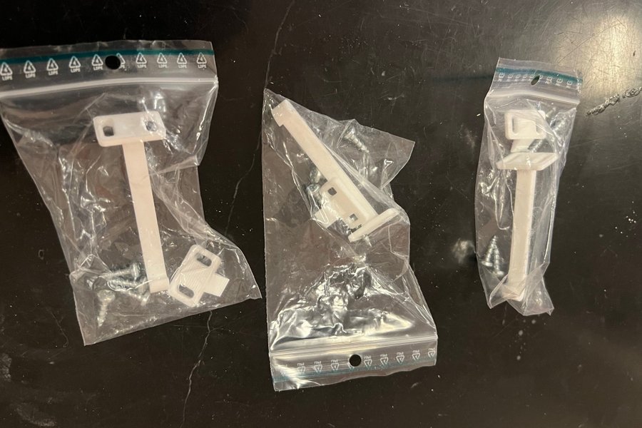 Tre stycken barnsäkert i obruten förpackning med tillhörande skruvar.
