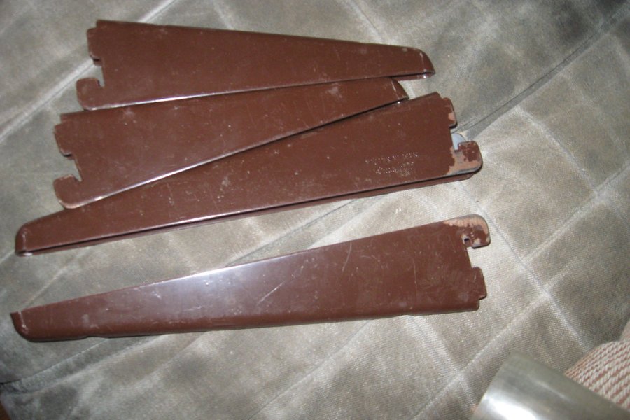 Dessa hyllkonsoler är tillverkade av metall och har en brun färg. De är designade för att användas med hyllsystem.