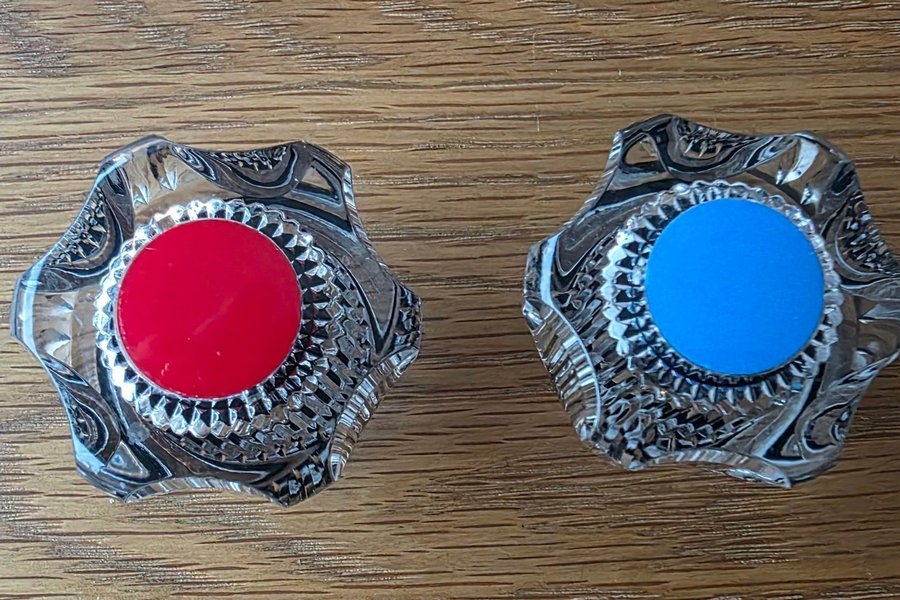 Retro kranvred från 1966 i absolut nyskick. Dessa vred är mycket ovanliga. Kall och Varmvattenvred.
