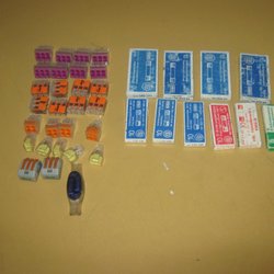 Parti med diverse elektronikkomponenter och kopplingsmaterial. Innehåller bland annat ABB OZX T2, Ensto universalradklämmor (KE01, TR 26), samt olika typer av kopplingsplintar och höljen. Materialet är förpackat i plastpåsar.