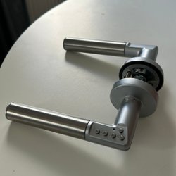 ASSA Dörrhandtag i metall.