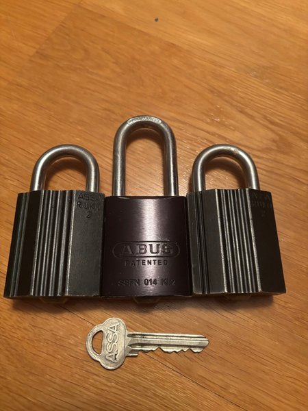 Ett set med 2 ASSA RUKO och ABUS hänglås. Inkluderar en ASSA-nyckel. Perfekt för extra säkerhet.