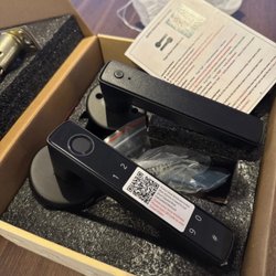 Intelligent lås med fingeravtrycksläsare och knappsats. Låset är svart och levereras med två nyckelbrickor samt en fysisk nyckel. Kan öppnas med kod, app, tagg, eller fingeravtryck. Levereras även med mekanisk nödnyckel.
