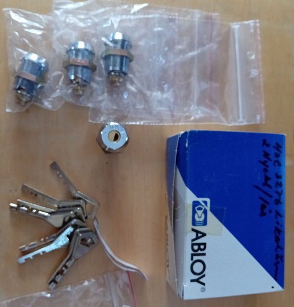 4 stycken ABLOY skåp/väsklås 8 stycken nycklar. Samtliga nycklar passar i alla fyra låsen