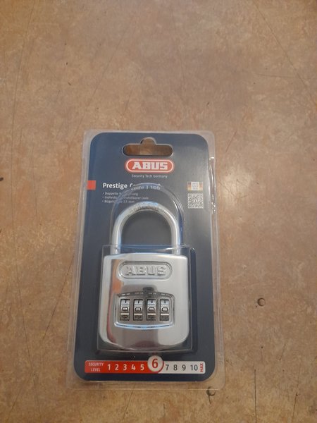 Ett nytt ABUS Prestige Code 160 hänglås med säkerhetsnivå 6. Dubbel låsning och individuellt inställbar kod. Bygelns tjocklek är 7,5 mm.