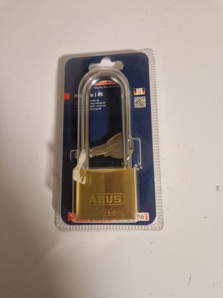 ABUS hänglås i mässing. Modell 65/50. Säkerhetsteknik från Tyskland. Levereras med nyckel.