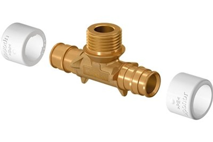 Produktinformation: Uponor Q&E T-rör. 22xG20. T-rör med utvändigt gängat avstick.