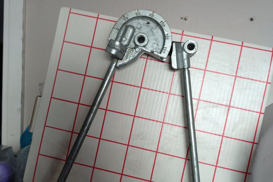 Rörbockare för 16 mm rör. Verktyget har markeringar för bockningsvinklar upp till 180 grader.