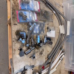Parti med blandade VVS-kopplingar i olika utföranden. Innehåller raka kopplingar, vinkelkopplingar och T-kopplingar. Även en kulventil med spakhandtag ingår.