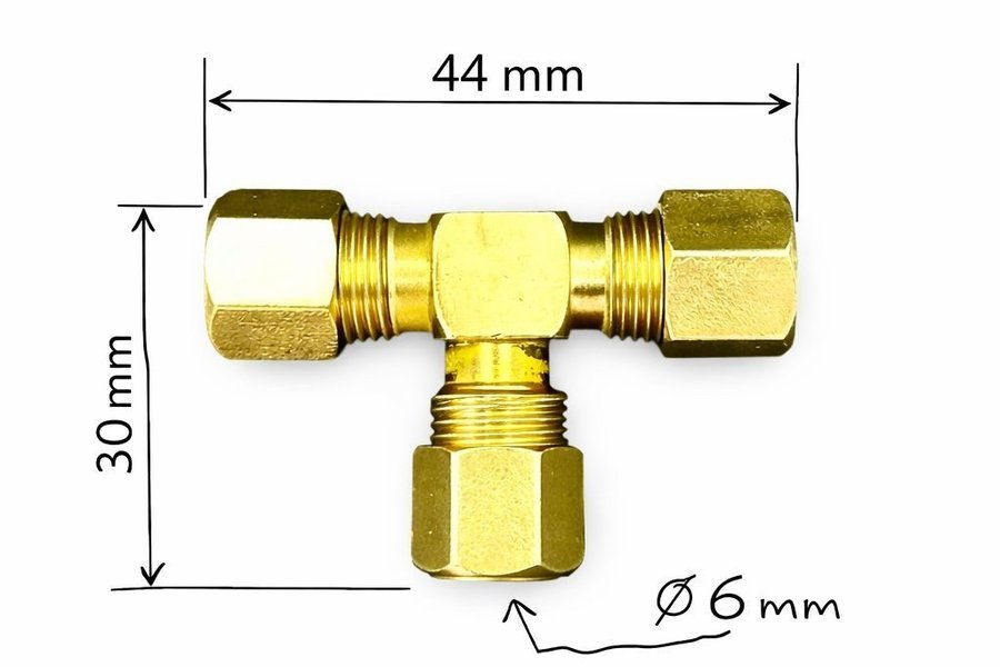 Koppling i mässing. (Se bild för mått) Vi har många i lager så behöver du fler så kontakta oss på Göta.
