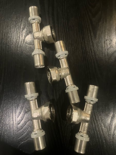 PEX Presskopplingar T-rör för VVS-installationer. Används för att förgrena PEX-rör i ett VVS-system. Dimension 16 på pressen