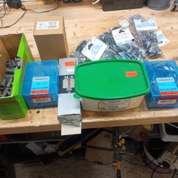 Parti med varmförzinkade expansionsbultar och expanderskruvar i olika dimensioner. Innehåller Gunnebo expanderskruvar M8 x 60/10, M10 x 140/60 och M10 x 60/5. Även Essve Golden Anchor M10/52/135 och M8/50/115.